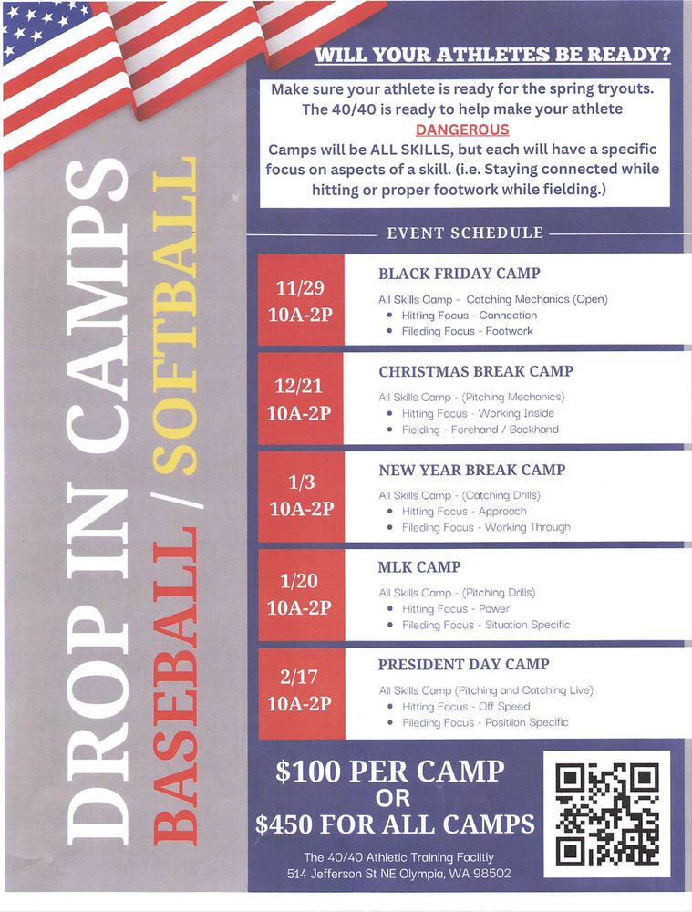 Rather than question, invest in their growth to maximize potential. The 40/40 provides intensive one-day camps during school breaks, ensuring accessibility. Each all-skills camp addresses specific development needs. Whether attending a single camp or investing in the discounted package of five, these programs ensure your athlete's preparedness for excellence. Take advantage of this opportunity evaluate your athlete's performance. Don't miss out on this great opportunity for your athlete to become 40/40 dangerous.